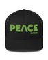 This six-panel Peace trucker cap with a mesh back will be a comfy and classic choice for a perfect day in the sun.